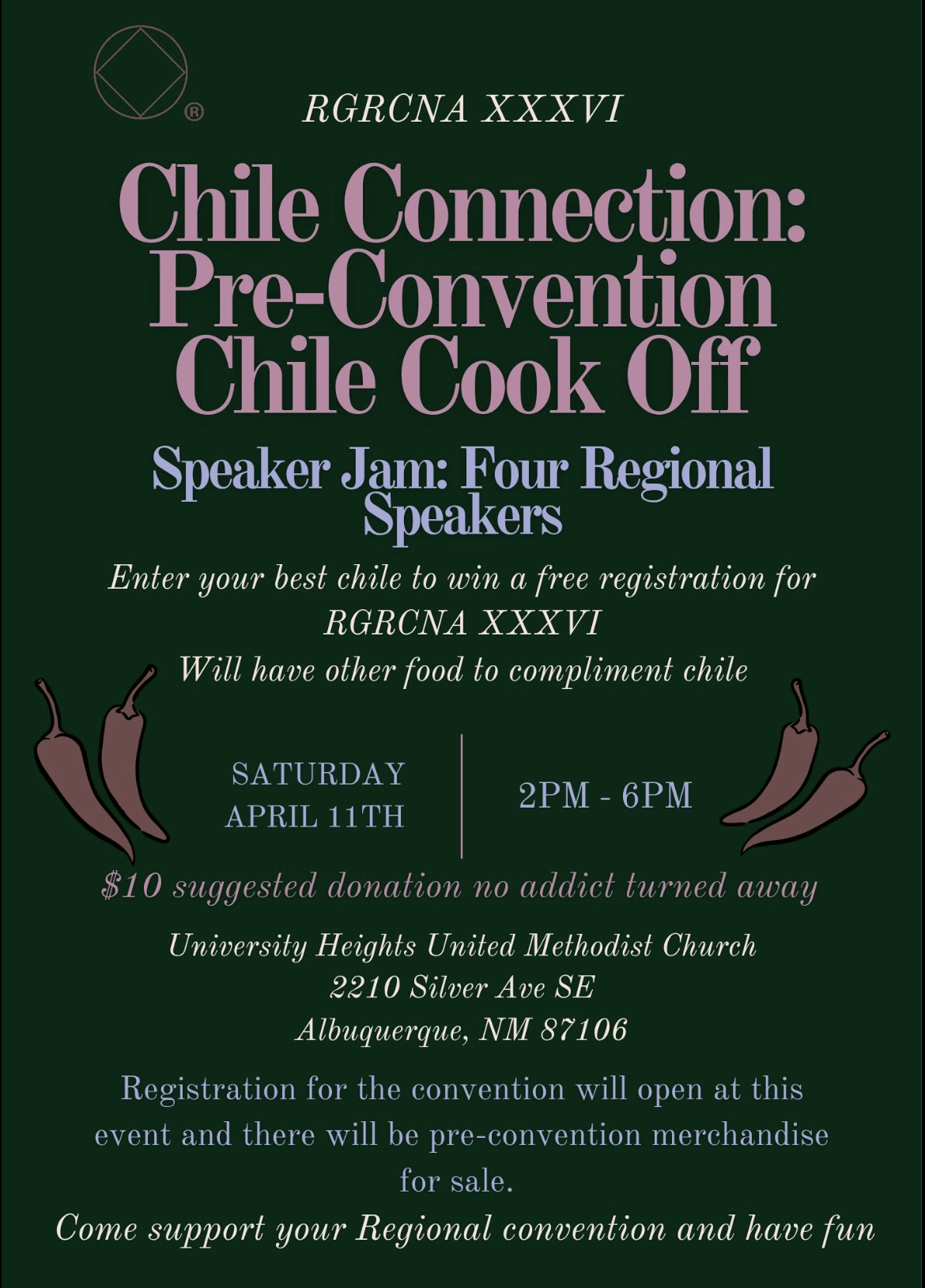 Chile Connection: Pre-Convention Chile Cook Off Speaker Jam: Four Regional Speakers Enter your best chile to win a free registration for RGRCNA XXXVI Will have other food to compliment chile […]